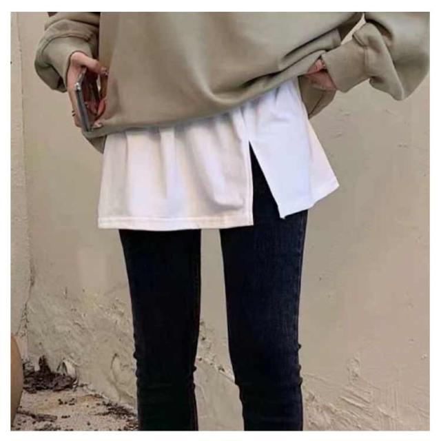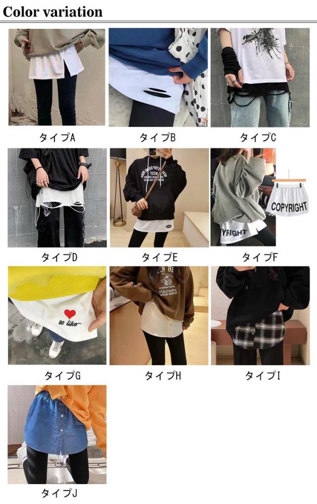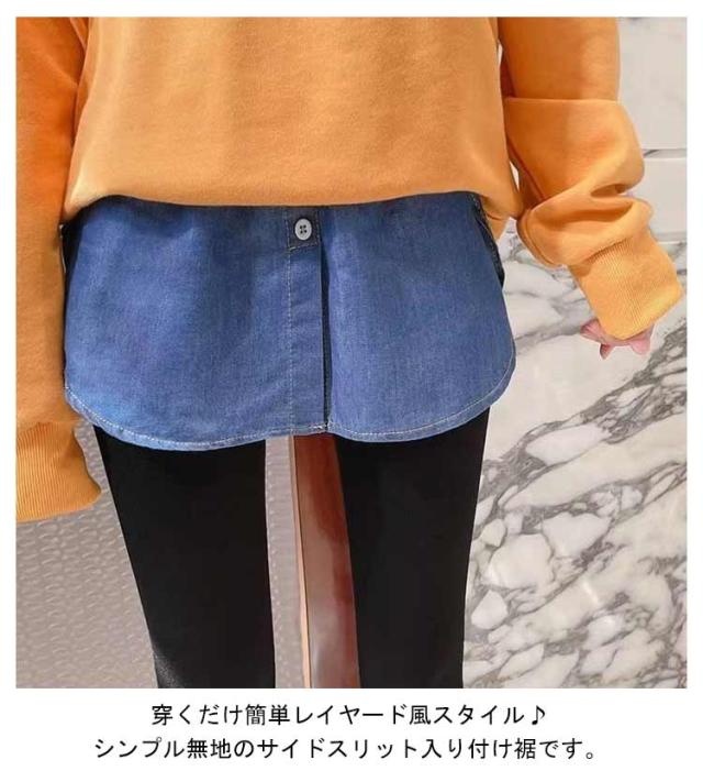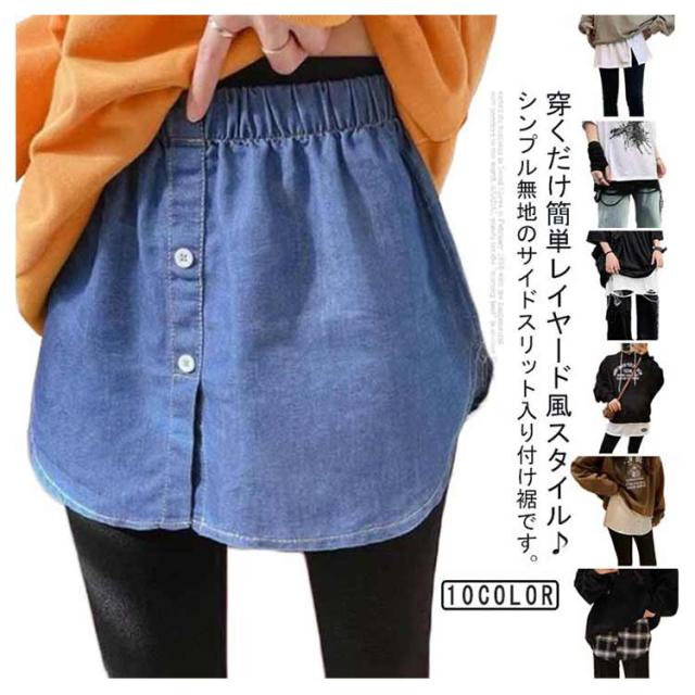 | 穿くだけ簡単レイヤード風スタイル♪ シンプル無地のサイドスリット入り付け裾です。 いつものコーデにプラスするだけでお洒落度アップ ウエストゴムなので、トップスに合わせた丈感に調整OK! 気になる体型カバーも出来ちゃうのが嬉しいですね | |