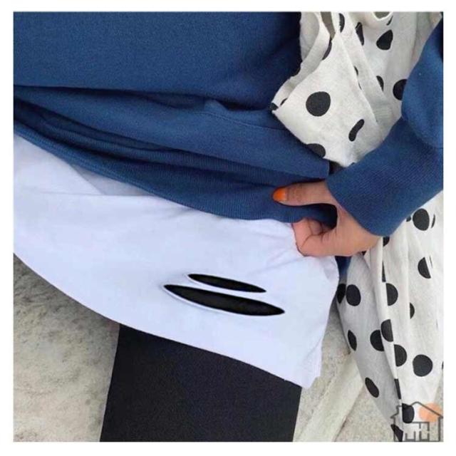 付け裾 つけ裾 おしゃれ スリットレイヤードTシャツ 付け裾 レイヤード風 レイヤードトップス 体型カバー スリット 秋冬 フェイクレイヤード 裾 ショート丈 ウエストゴム Tシャツ ゆったり 大きいサイズ 重ね着風 きれいめ おしゃれ お出かけ