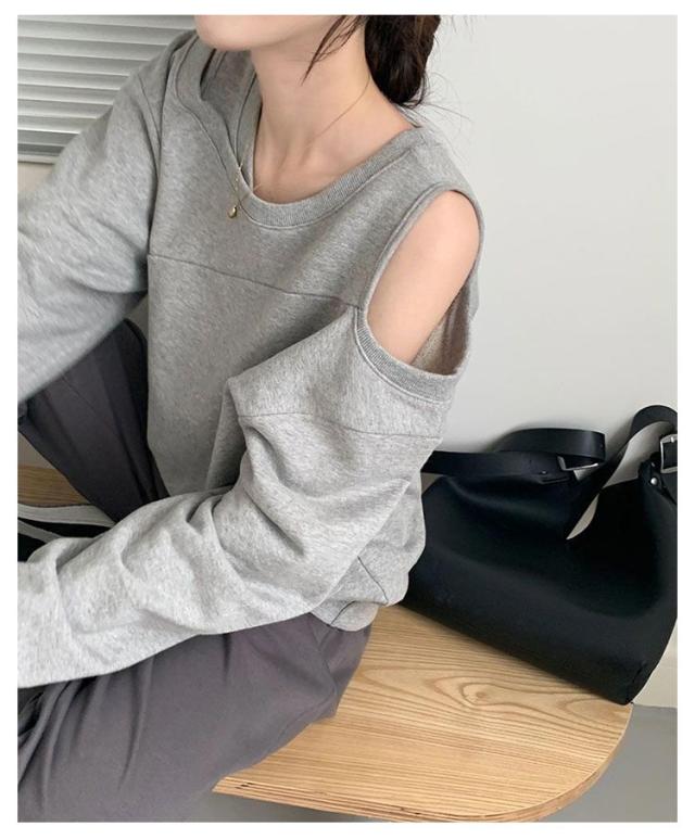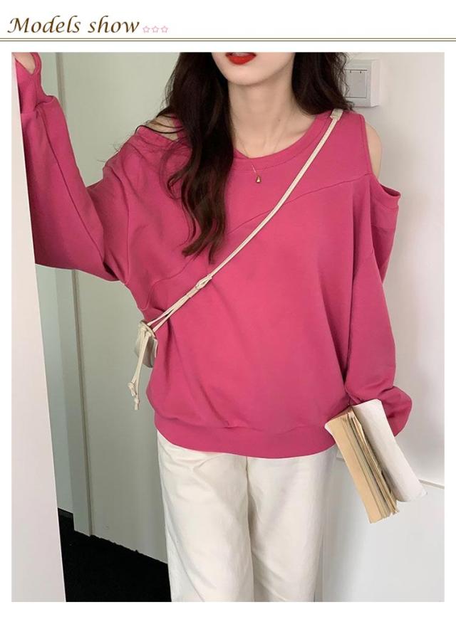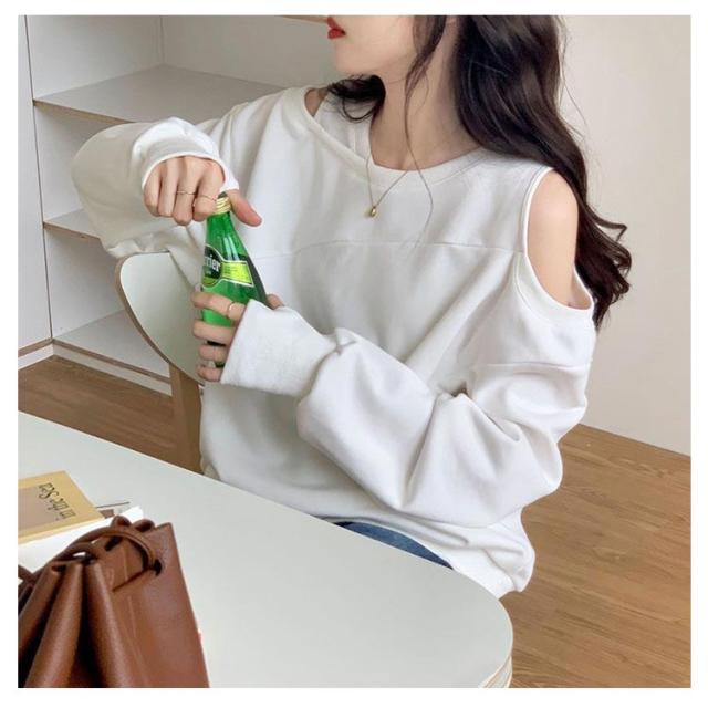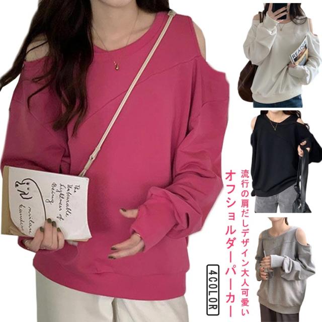 肩あき 肩開き 春秋 肩出し 長袖トレーナー トレーナー 大きいサイズ カットソー スウェット パーカー Tシャツ トップス トップス カットソー プルオーバー レディース 可愛い オフショルダー カジュアル かわいい 肩見せ 肌見せ ゆったり 個性的 プルオーバー 無地