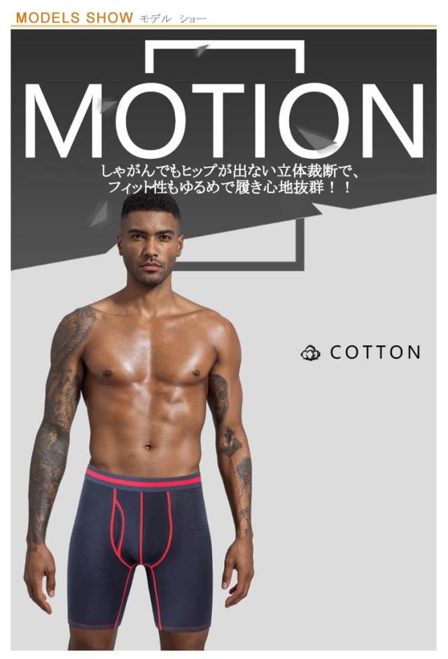 | 2枚セット!前開きタイプの立体設計&立体裁断ロングボクサーパンツ☆ しゃがんでもヒップが出ない立体裁断で、フィット性もゆるめで履き心地抜群!! | |