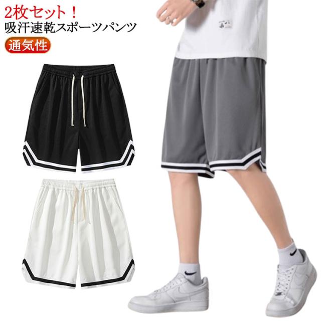 速乾 スポーツウェア スポーツ ジャージ 運動着 2枚セット ハーフパンツ ショートパンツ バスケパンツ 部屋着 バスケットパンツ 短パン 無地 ズボン 膝上 5分丈 トレーニング ランニング 通気 送料無料 ジュニア メンズ 運動会 体育祭 2枚セット 半ズボン