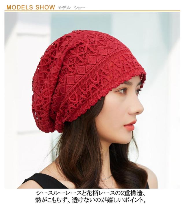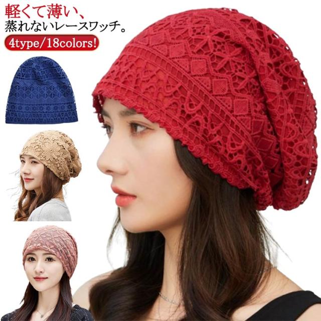 | 4type/18colors! 軽くて薄い、蒸れないレースワッチ。 シースルーレースと花柄レースの2重構造、熱がこもらず、透けないのが嬉しいポイント。 汗を素早く吸収、外部へ発散し、いつもサラサラドライをキープ。 ゆったりかぶれるサイズ感で、外出はもちろん、室内用としても一年を通して使えます。 | |