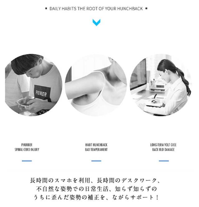 | 丁寧な縫い目と耐久性高いの素材、変形しないて猫背サポーター。 初めて使用して、姿勢を変えることで不快感がある場合がありますので、短時間で何度も使用できて、徐々に慣れるようになります。 長時間のスマホを利用、長時間のデスクワーク、不自然な姿勢での日常生活、知らず知らずのうちに歪んだ姿勢の補正を、ながらサポート! 正しい姿勢は、身長を高く見せるだけでなくお腹をスッキリ見せれます。 体を矯正するために、普段は器具で姿勢を矯正して、背中の筋肉を鍛えると同時に、寝姿を注意してください。 通気性抜群!快適なメッシュ素材で蒸れることなく、一年中快適に着用できます。 2本のボーンがしっかり肩甲骨を引き寄せ正しい姿勢へと導きます。腰を支え、猫背を補正することで本当の良い姿勢を実現します。 幅広のベルトが腰への負担を分散することができ、正しい姿勢を体に覚えさせることで、ストレスを感じなく自然と身に付きます。 マジックテープで調整が容易で、男女、体型や好みの諦め加減に合わせて自由に調整していただけます。 | |
