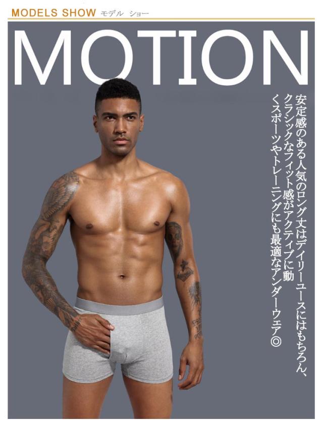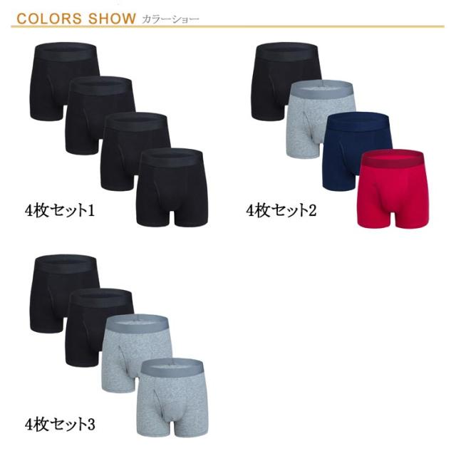 | 4枚セット! メンズのロングボクサーパンツ。 安定感のある人気のロング丈はデイリーユースにはもちろん、 クラシックなフィット感がアクティブに動くスポーツやトレーニングにも最適なアンダーウェア◎ 前開きなのも嬉しいポイント★ 立体設計のフロント部分が締め付けを軽減。 定番のコットンストレッチ素材がサラリとした肌触りと通気性・伸縮性を兼ね備えた快適な穿き心地を実現しています。 プレゼントにもおすすめ! | |