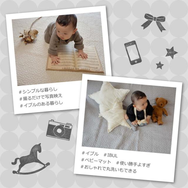 イブル 洗えるキルトマット 190×190cm 綿100% マルチカバー 韓国インテリア マット すべり止め付き キルティング 出産祝い ギフト キッ