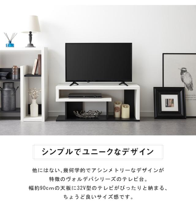 テレビ台 ローボード ヴォルデバ 幅90cm ダークブラウン ホワイト 収納 シンプル ユニーク 幾何学 おしゃれ 白井産業(代引不可)【送料無料】