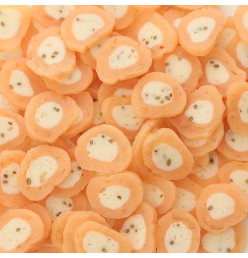 肉類(鶏肉、鶏ささみ)、小麦粉、コーンスターチ、 エゴマ油、チアシード、ソルビトール、グリセリン、 リン酸塩(Na)、オリゴ糖、Lーカロニチン、アスタキサンチン 、着色料(二酸化チタン、赤106 号、β−カロテン)