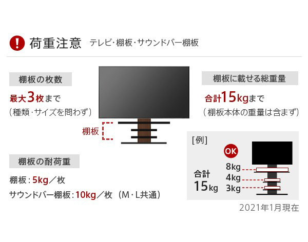 スタンド本体/60〜90v対応 | レコーダー棚板 | サウンドバー棚板/Mサイズ | サウンドバー棚板/Lサイズ |