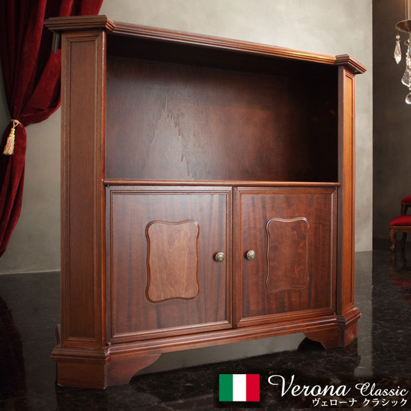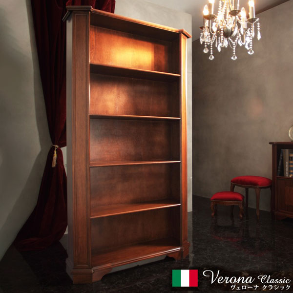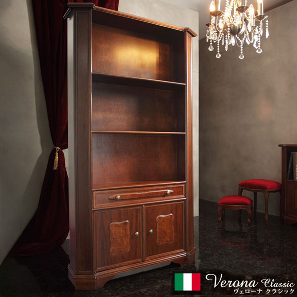 完成品 イタリア製 ヴェローナクラシック オープンキャビネット 幅98 ハイタイプ オープンラック 扉付き 棚 収納棚 おしゃれ 木目調 天然木 収納 本棚 ブックラック(代引不可)【送料無料】
