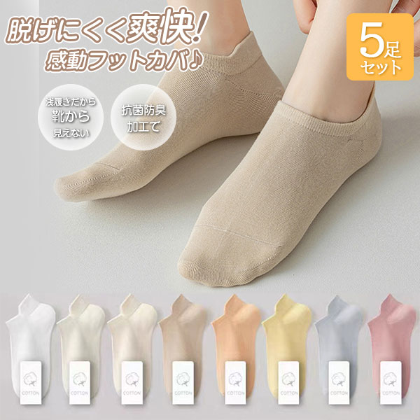 カバーソックス 5点セット 夏 パンプスソックス レディース フットカバー くるぶし丈 通気靴下 浅履き 冷感ソックス 脱げない 靴下 快適 薄手