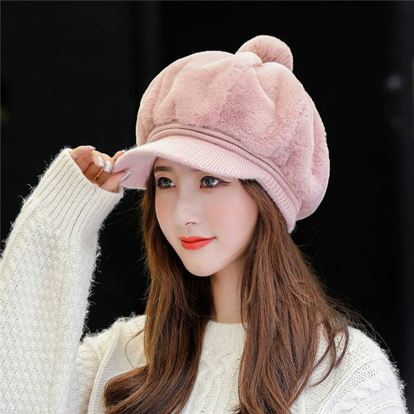 ポイント増量中 人気急上昇 キャスケット レディース ニット つば付き ボアキャップ コットン 小顔効果 抗がん剤 帽子 男女兼用 おしゃれ 大きめ あったか 防寒