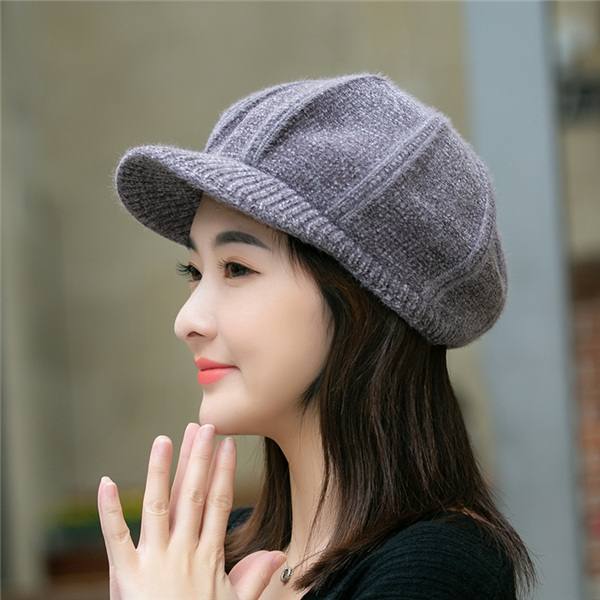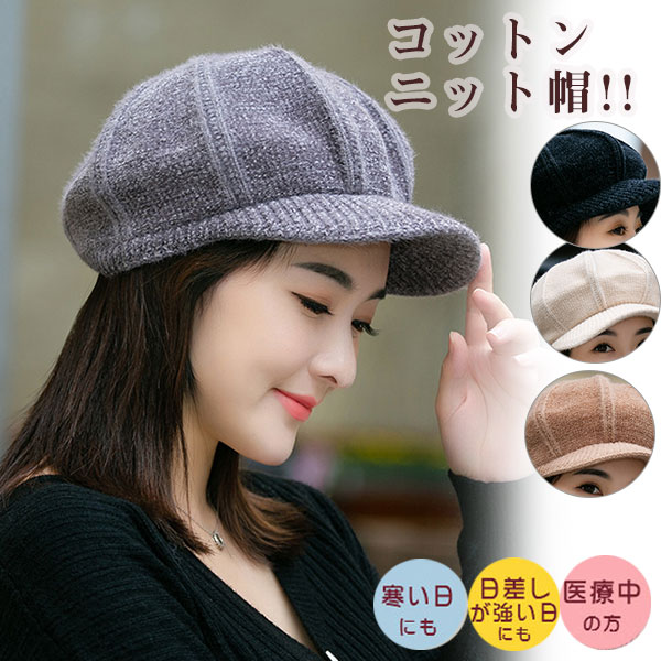 ニット キャスケット レディース つば付き キャップ 小顔効果 大きいサイズ 帽子 秋冬 冬用 ゆったり シンプル 帽子 医療用 おしゃれ 防寒 冬物