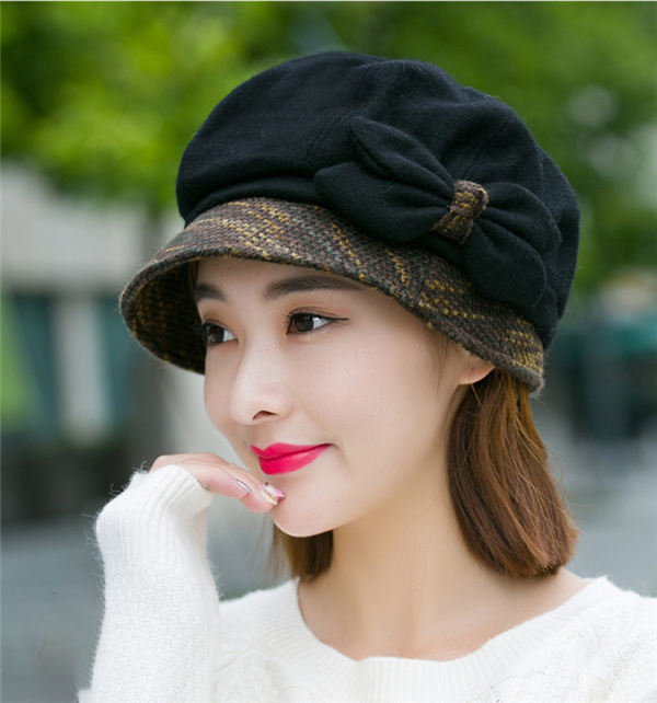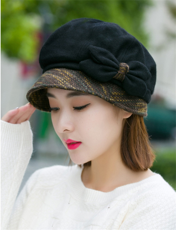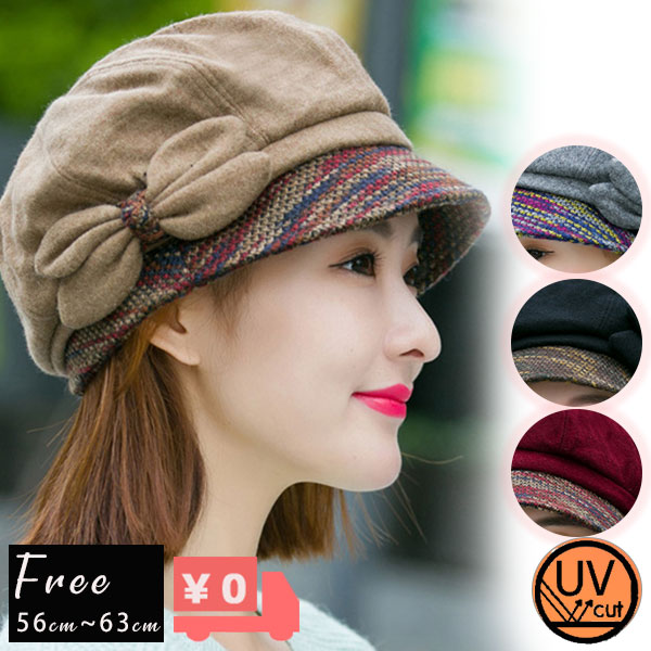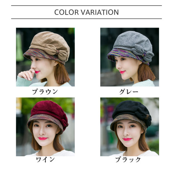 ポイント超超祭 キャスケット レディース つば付き キャップ 蝶結び 小顔効果 大きいサイズ 帽子 秋冬 防寒対策に ゆったり シンプル 帽子 医療用 おしゃれ 防寒