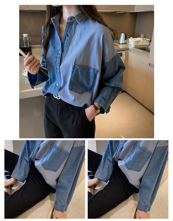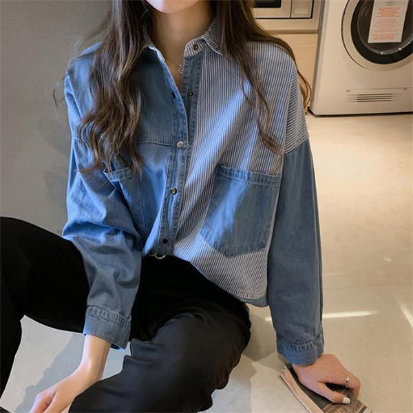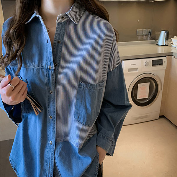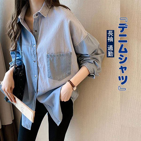 【本日の激短SALE】デニムシャツ レディース 長袖 シャツ 切り替え トップス カジュアル ストライプ アウター 秋 ゆったり 通勤 体型カバー デニム Gジャン