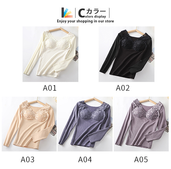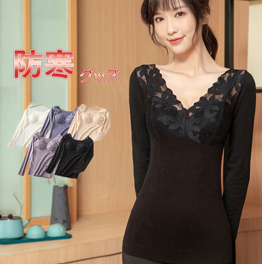 発熱インナー 防寒インナー レディース インナーヒート tシャツ 温感インナー カップ付き 美ライン vネック 肌着 長袖 極暖 秋冬 カットソー