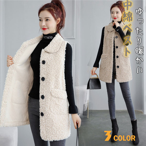 ボアベスト レディース フリースベスト モコモコ ノースリーブ ジレ 厚手 前開き ジップアップ アウター 寒さ対策 冬物 防寒 カジュアル オシャレ