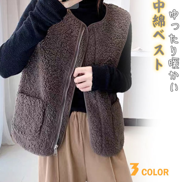 フリースベスト レディース ボアベスト モコモコ ジレ 厚手 前開き ジップアップ アウター ノースリーブ 冬物 防寒 カジュアル 可愛い 寒さ対策