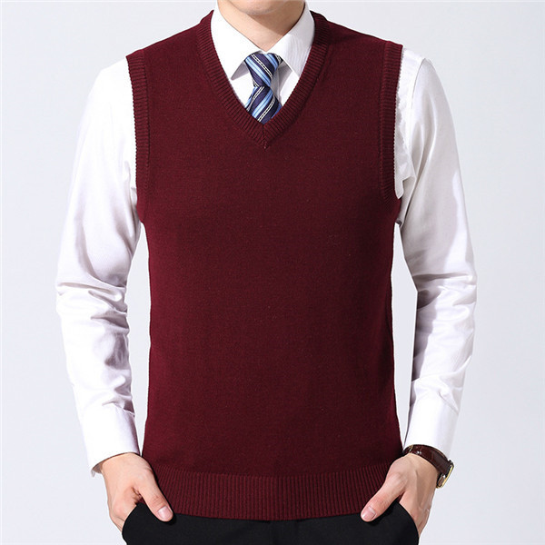 ニットベスト メンズ ビジネス 前開襟 セーター 紳士 ゆったり Vネック ウール混 開襟 ビジネス ケーブル編み 無地 仕事用 制服 通勤