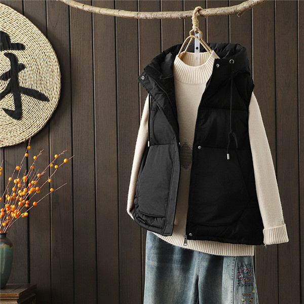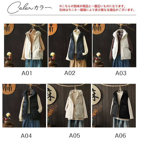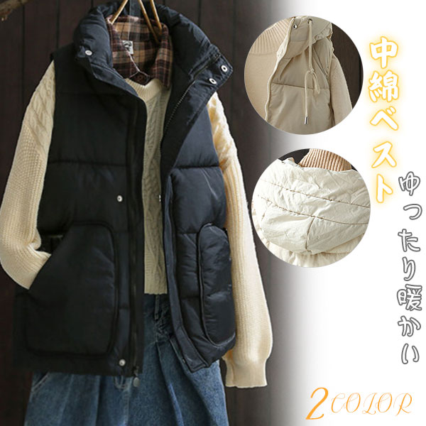 中綿ベスト ベスト レディース ロング ロングベスト ダウンベスト 上品 防寒ベスト 中綿入れ フード付き ノースリーブ 防寒着 大きいサイズ