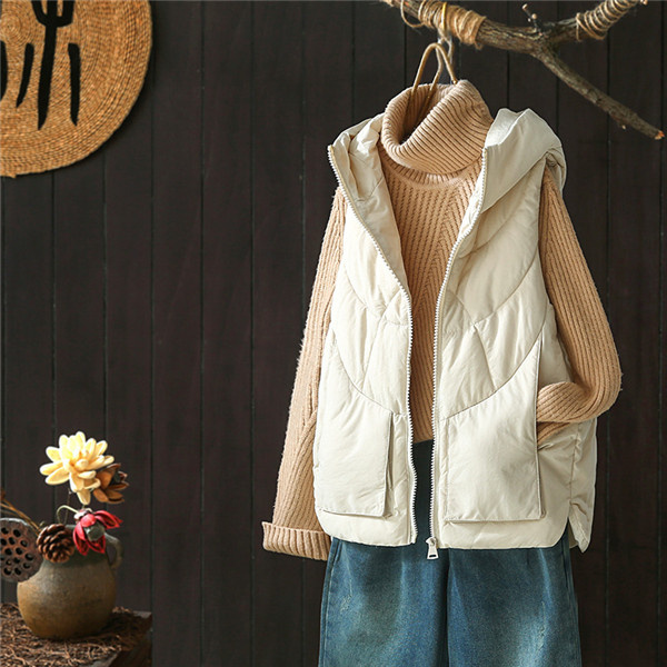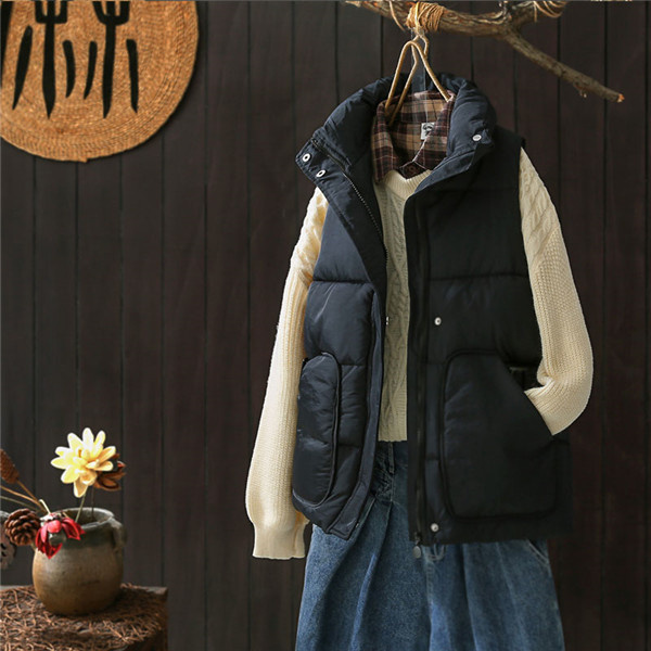◎暖かみがあり軽い着心地のベストを着ぶくれ感を抑えたすっきりシルエットでおつくりしました。