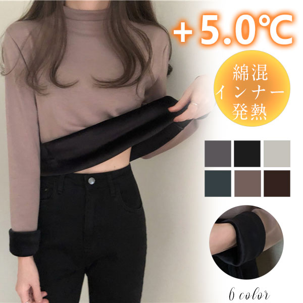 発熱 シャツ インナー 裏起毛 カットソー 極暖 暖かい あったか 保温 タートルネック 防寒 冬 部屋着 トップス 下着 無地 レディース 防寒