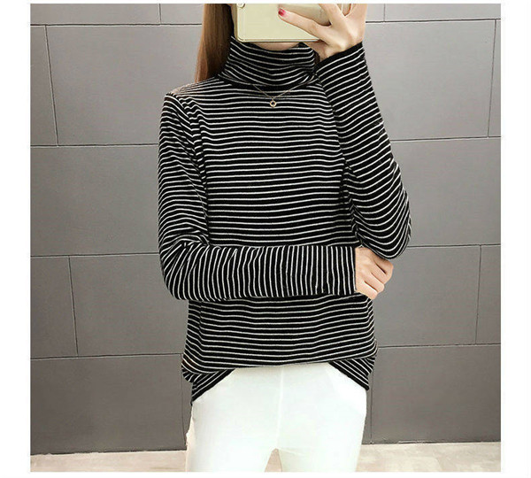 発熱 シャツ インナー 裏起毛 カットソー 極暖 暖かい あったか 保温 ボーダー柄 タートルネック 防寒 冬 部屋着 トップス レディース 防寒