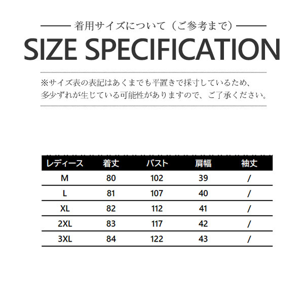 ※基本的に、XL・LL・2Lのサイズはすべて同じサイズです。