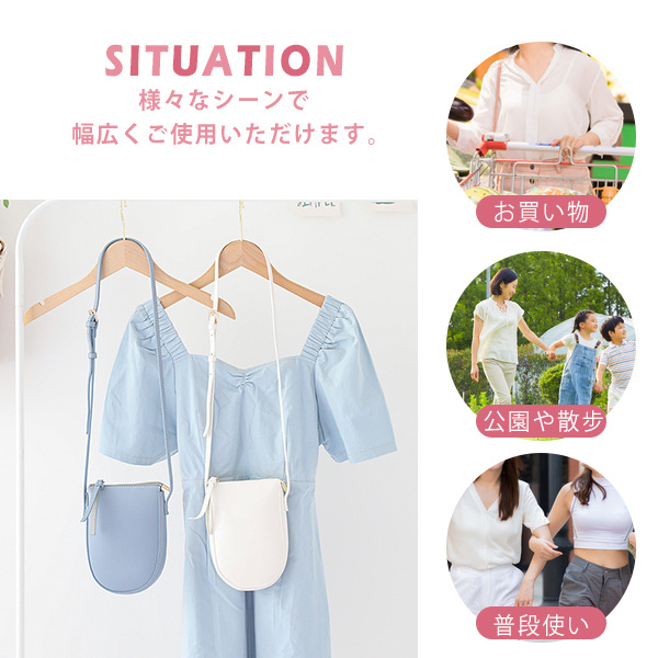◎スマホやミニ財布、鍵、消毒液など必要最小限の小物がすっぽり収納できるサイズ感