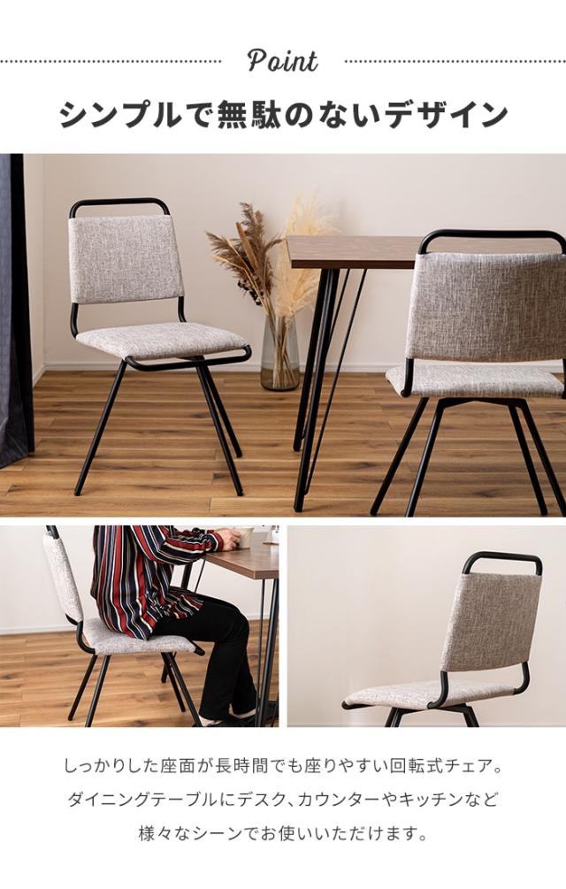 【値下げ】椅子 回転式 1人掛け椅子 ダイニングチェア スチール脚 ファブリック 背もたれ アームレス モノトーン 家具 インテリア 無地