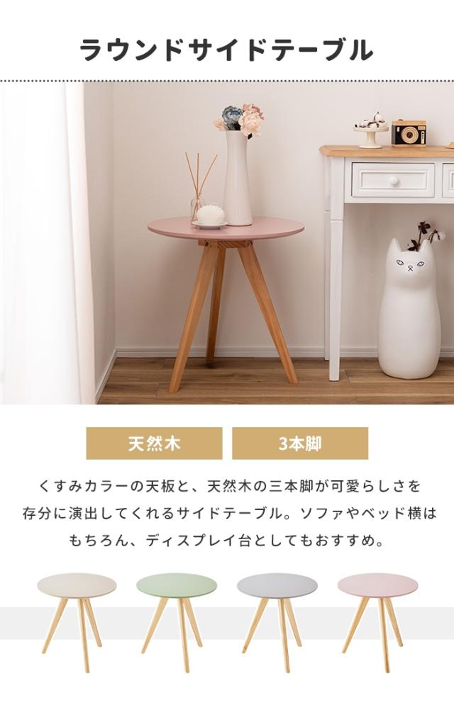 【値下げ】サイドテーブル ラウンドテーブル 丸型 三本脚 50×50cm ディスプレイ台 くすみカラー 可愛い ナチュラル 北欧風 おしゃれ