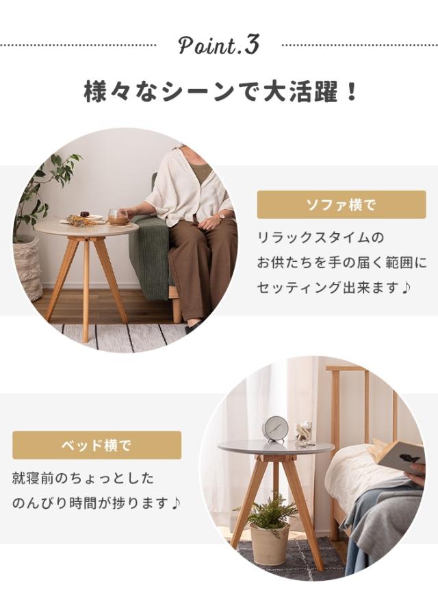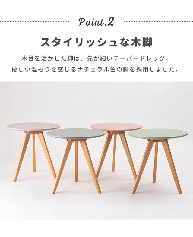| くすみカラーの天板と、天然木の三本脚が可愛らしさを存分に演出してくれるサイドテーブル。 ソファやベッド横はもちろん、ちょっとしたディスプレイ台や、玄関先などにもオススメです。 ナチュラルな天然木の脚。 簡単組み立て。 持ち運びラクラク。 |
