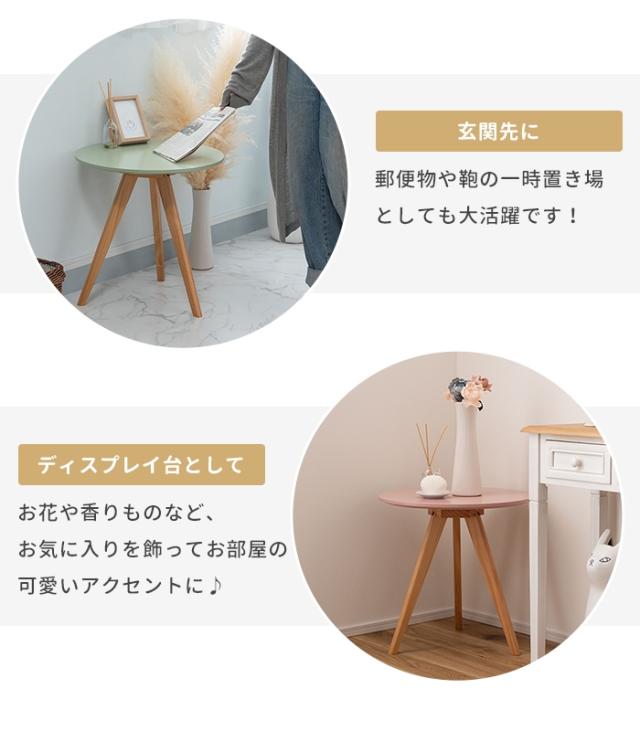 キーワード: テーブル サイドテーブル ナイトテーブル ディスプレイ台 木製 天然木 パイン くすみカラー 三本脚 おしゃれ コンパクト シンプル 北欧 韓国 かわいい ナチュラル 一人暮らし ベージュ グリーン ピンク グレー 幅50 奥行50 高さ50 丸 円形 ラウンド 軽量 ディスプレイ 作業テーブル ミニテーブル 机 ソファサイド 玄関 インテリア パソコン デスク サブデスク 簡単組立 持ち運び 移動