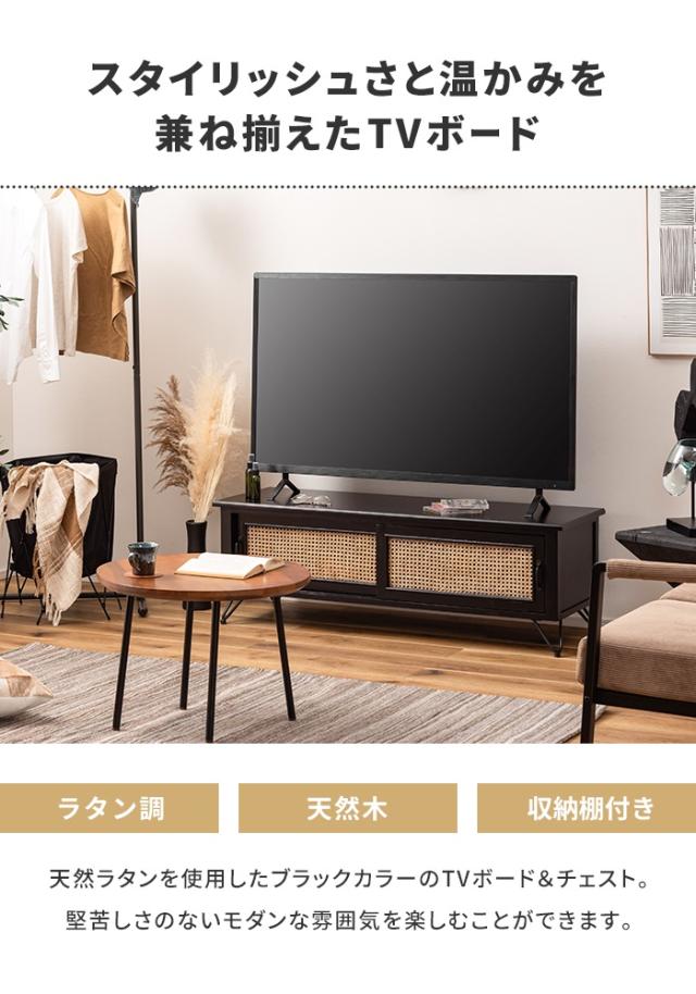 【値下げ】テレビボード TVボード ローボード 幅120 収納 天然木 木製 インテリア リビング収納 ラタン 籐 ナチュラル シンプル
