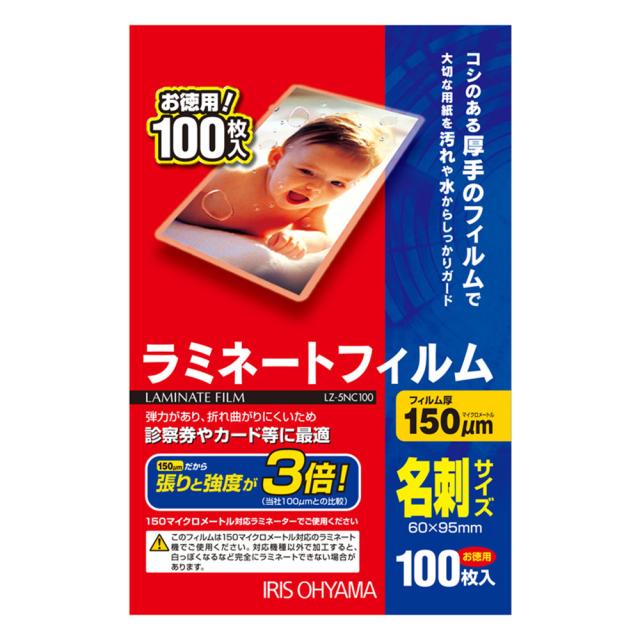 ラミネートフィルム 名刺サイズ 150μm LZ-5NC100 (100枚) 1箱 アイリスオーヤマ