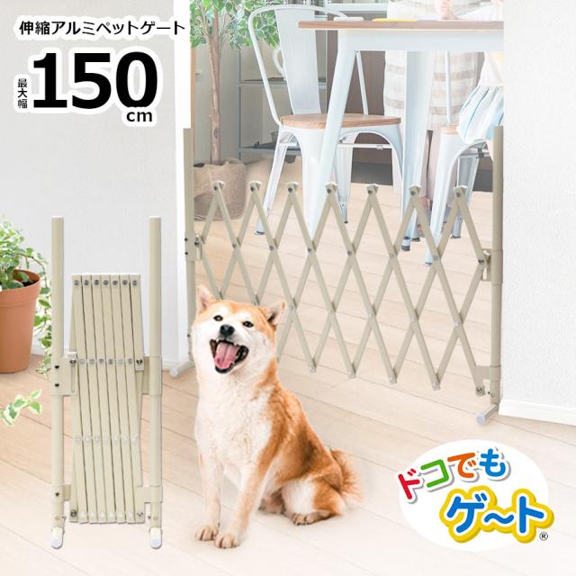 【アイボリー】ペットゲート アルミフェンス ALMAX アルマックス 幅150×高さ70 ドア 階段 ゲート 軽い 犬 SXG-0715 ベビーゲート