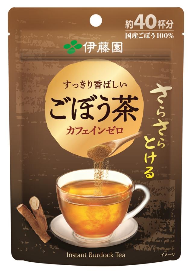 「さらさらとける すっきり香ばしい ごぼう茶」は、すっきり甘く香ばしいインスタントごぼう茶です。ごぼう独特の「えぐみ」や「土臭さ」を取り除き、飲みやすさを追求しました。 お湯でも冷水でもすぐに溶け、保存に便利なチャック付きスタンド袋を採用し、いつでもどこでも手軽においしいごぼう茶をお楽しみいただけます。カフェインゼロのため、時間を気にせずお飲みいただけることもポイントです。
