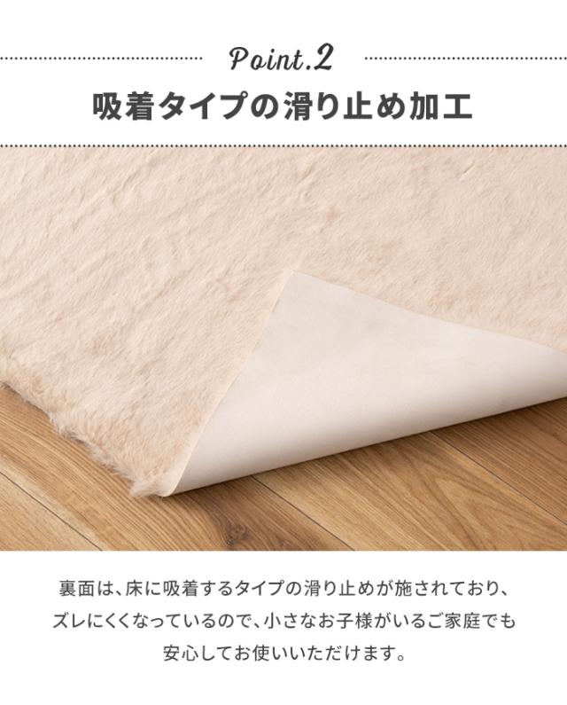 | しっとりふわふわな手触りがくせになる、やわらか触感のラグマット。 一度触ったらその気持ちよさの虜になる、とにかくふわふわ柔らかいソフトシャギーなラグ。 耐久性が高く、熱や摩擦にも強いポリエステル生地を採用。 裏面は、床に吸着するタイプの滑り止めが施されており、ズレにくくなっているので、小さなお子様がいるご家庭でも安心してお使いいただけます。 洗濯OK!でラグを清潔に保つことができます。 ※押し洗いがおすすめです。 ※漂白効果のある洗剤は使用しないでください。 ※洗濯後は多少縮む場合がございます。 |