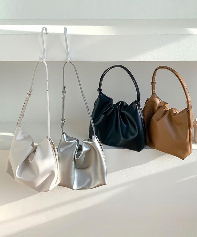 滑らかなスムースPUレザーにふっくらフォルムに仕立てたおしゃれなデザイン♪