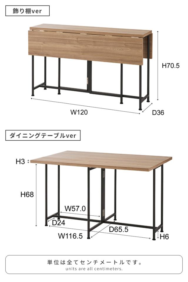 | 幅120×奥行36・58・80×高さ70.5cm |