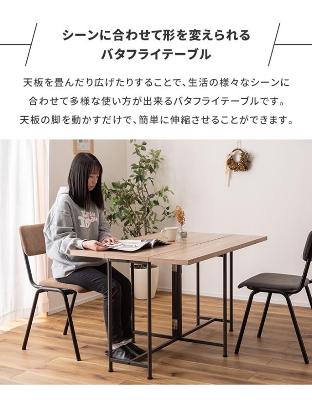 【値下げ】テーブル バタフライテーブル ダイニングテーブル デスク 作業台 木目調 スチール脚 ディスプレイ 北欧風 ナチュラル おしゃれ