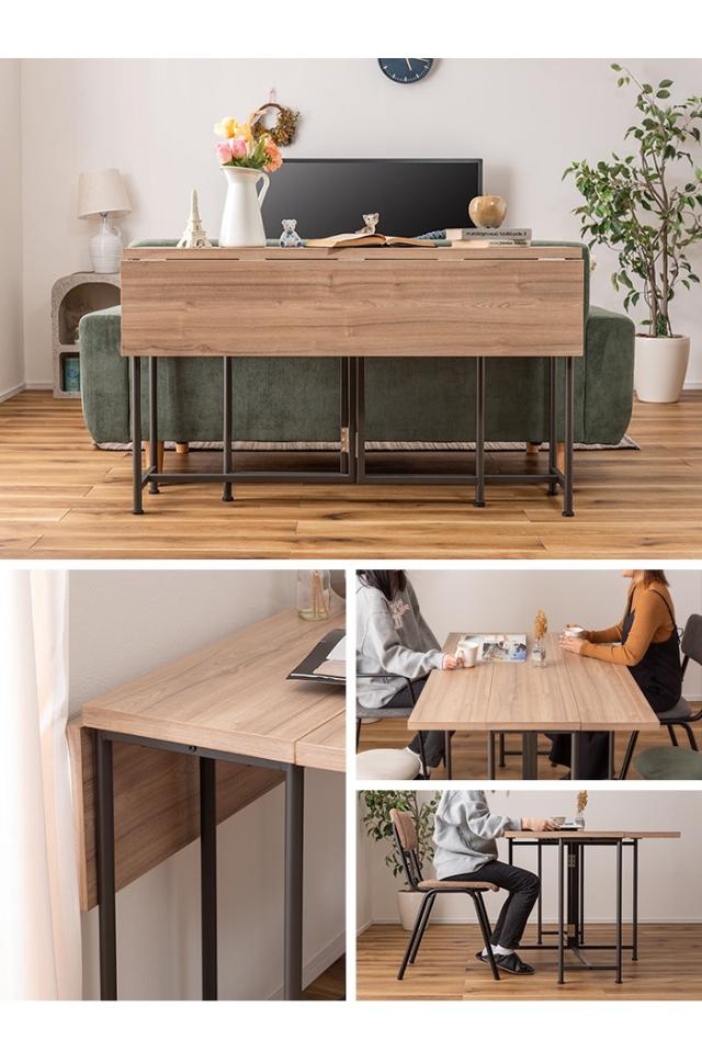 天板を畳んだり広げたりする事で、生活の様々なシーンに合わせて多様な使い方が出来るバタフライテーブルです。