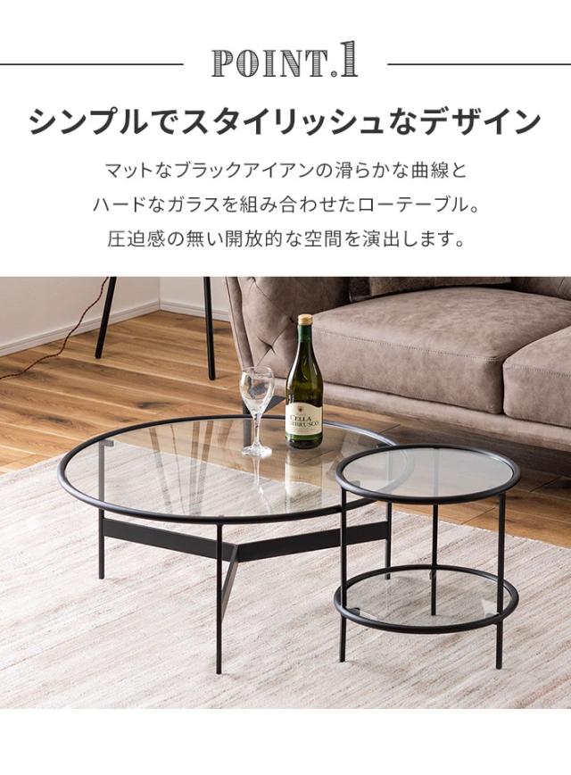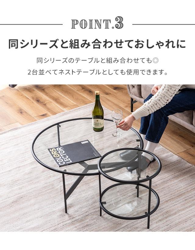 キーワード: ガラステーブル センターテーブル ラウンドテーブル 幅78 高さ37 ガラス アイアン インダストリアル モダン シンプル スタイリッシュ おしゃれ クリア ブラック 黒 ネストテーブル 強化ガラス ガラス天板 リビングテーブル サイドテーブル 丸 まる 高級感 おしゃれ 丸型 円形 丸い ガラス製 テーブル 円形テーブル センターテーブル カフェテーブル ガラス天板 アイアン ディスプレイ 高級感 完成品 異素材 ベッドサイド ソファサイド リビング 書斎 寝室
