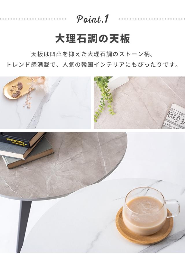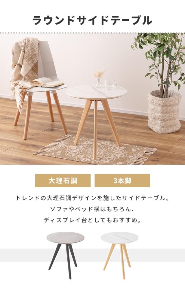 キーワード: 大理石調 大理石 韓国インテリア シンプル おしゃれ スタイリッシュ 直径50cm 50×50 高さ50cm 丸テーブル テーブル ラウンドテーブル サイドテーブル 机 つくえ ナイトテーブル 丸 円形 韓国 北欧 ストーン かわいい コンパクト グレー 灰色 ブラック 黒 ホワイト 白 白色 ナチュラル 木目 木 ベージュ 木製 3本脚 軽量 移動 作業デスク 読書 パソコン PC 作業