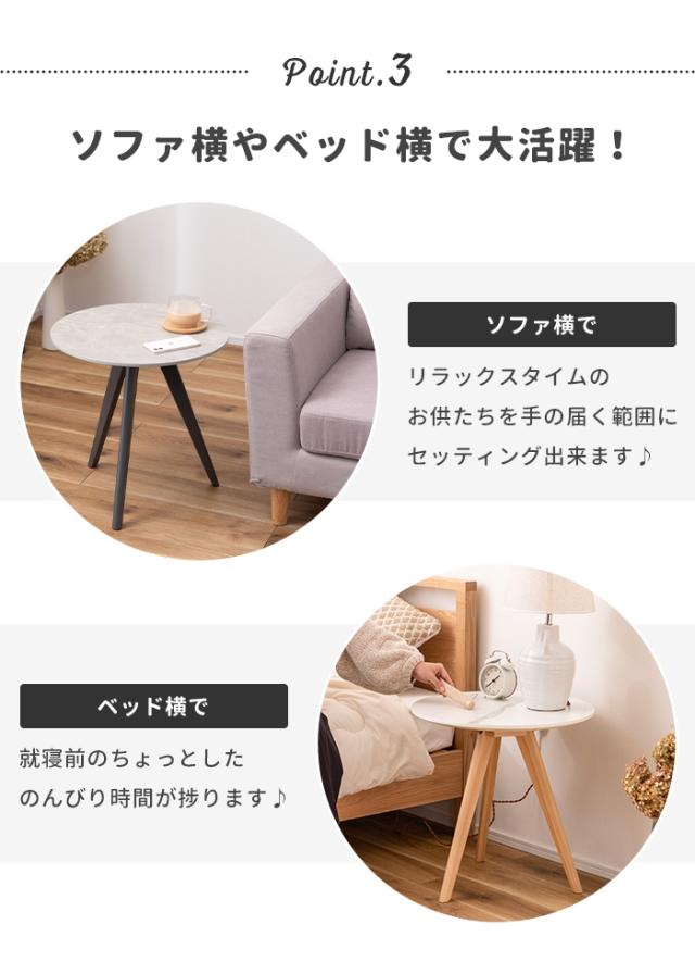 ソファやベッド横のテーブルはもちろん、小物などのディスプレイ台としてもおすすめ。