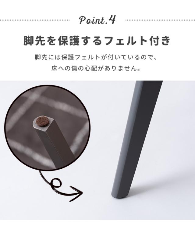 脚先には保護フェルトが付いているので、床への傷の心配がありません。