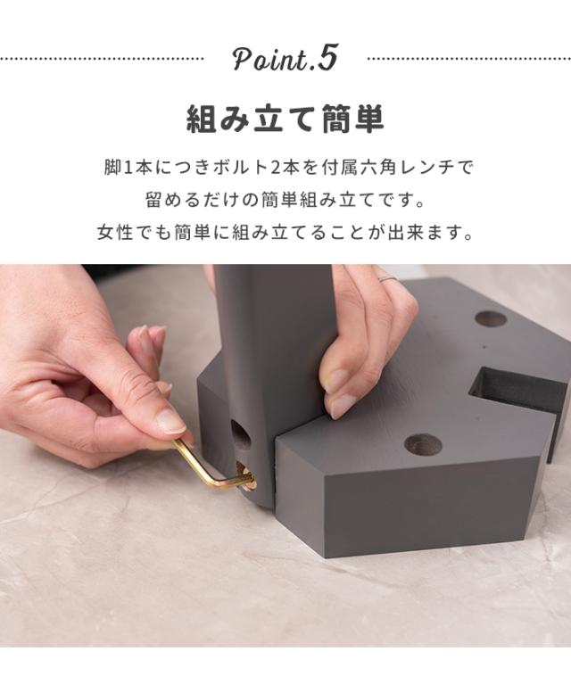 脚1本につきボルト2本を、付属六角レンチで留めるだけの簡単組立。