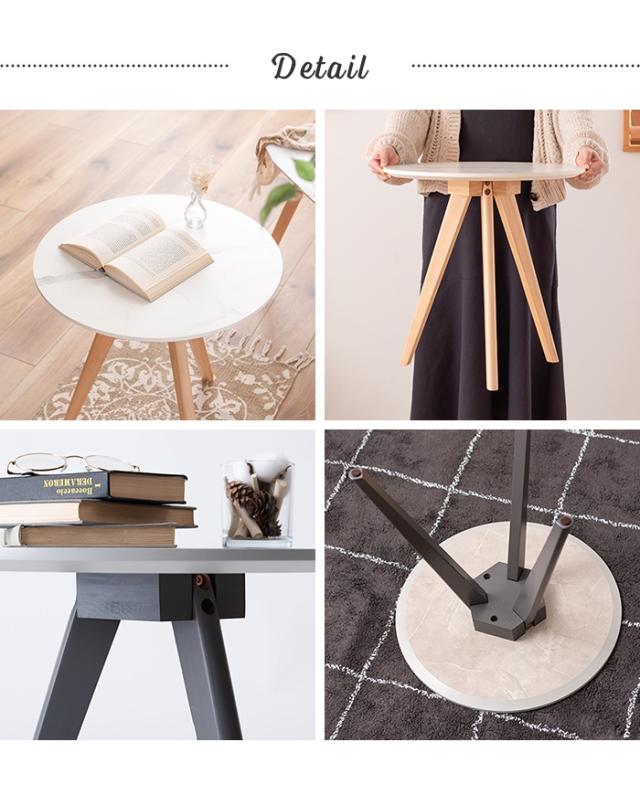 【値下げ】ラウンドテーブル サイドテーブル 円形 大理石調 木製脚 ソファサイドテーブル ベットサイドテーブル ディスプレイ台 おしゃれ