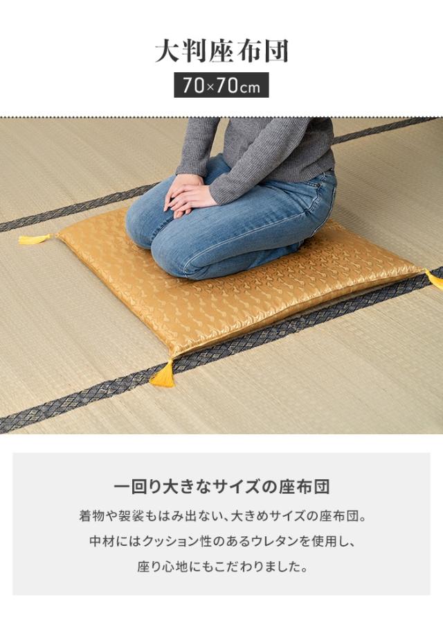 【値下げ】座布団 和室 大判 70×70cm 和柄 仏前 法事 お盆 畳用 1人用 ウレタン クッション 軽量設計 撥水加工 省スペース
