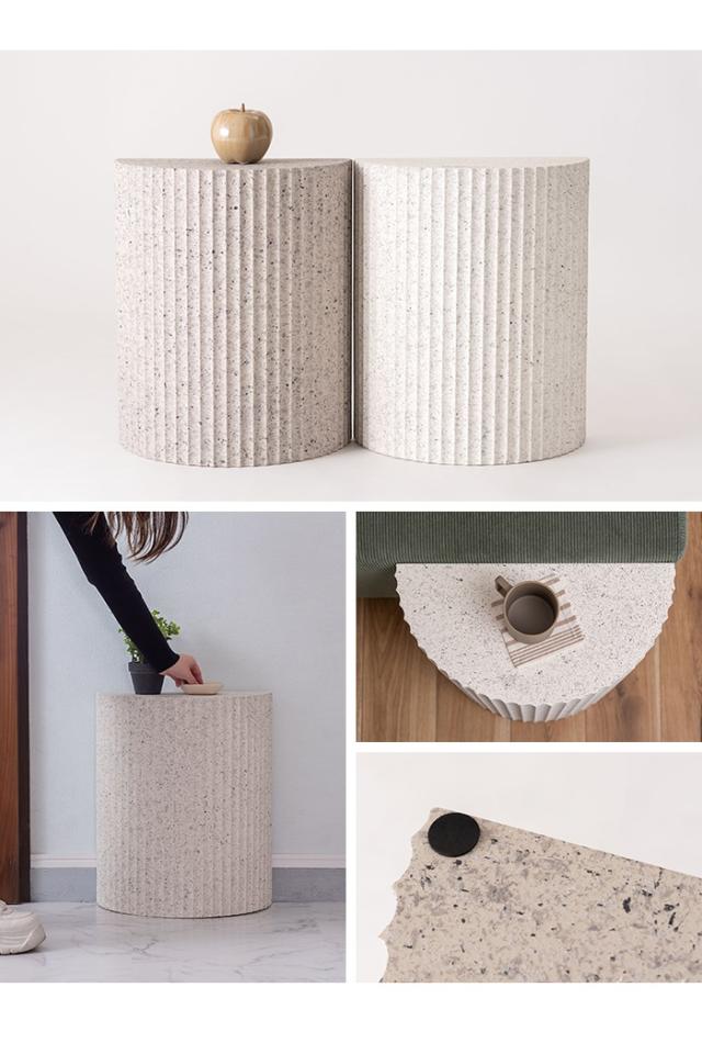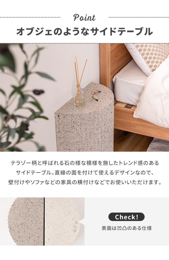 キーワード: サイドテーブル テーブル ミニテーブル ナイトテーブル 幅40 奥行20.5 高さ48 繊維板 ライトグレー ホワイト 白 灰 おしゃれ シンプル シック モダン テラゾー柄 大理石模様 石目調 石模様 マーブル 半円 モノトーン リビング ダイニング 玄関 寝室 おしゃれ シンプル モダン 一人暮らし 新生活 花台 小物置き