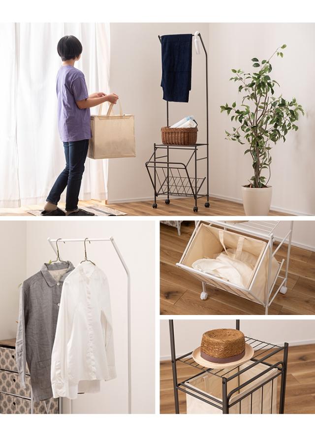 【値下げ】ランドリーハンガー バスケット付き キャスター付き ランドリーバスケット 洗濯かご ハンガー シンプル 便利 ランドリー雑貨 収納